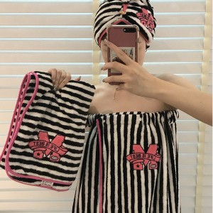 바스로브 스트라이프, 라운딩 갈때 여성 골프 샤워가운 헤어타올캡